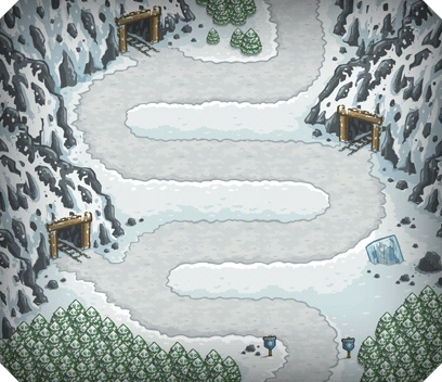 Coldstep Mines is the seventh level in the game comprised of sixteen waves. The player starts with 700 Gold and eleven Strategic Points to build at. It is the first of two scenarios to have short-cuts through the mines for the enemy. The map features three points of entry starting from the single direction: the central route leads the attackers all the way along the player's defences, while left one leads through the rightmost short-cut and the right one cuts most of the way through the leftmost short-cut.