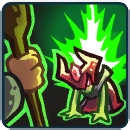 Brainwashed and turned into an eldritch monster by the cultists, the king of Linireans is ready to bring pain to the Alliance. He jumps out after wave 15, released by Seeress Mydrias. He's got quite a short path to the left exit, great health, medium amounts of both armor and magic resistance, an area melee attack (60 radius) and the ability to summon weak but fast Glarelings as support. Additionally, Seeress will support him with cultist troops and her illusions, which permit towers from acting and give shields that nullify damage to enemies, including Corrupted Denas himself. Thankfully, in addition to your towers, Vez'nan himself has joined the battle to help his frenemy. He has three spells which can be used every once in a while: either casting a green magic bolt that strikes Mydrias, destroying her current illusions and preventing her from making more for some time; casting demonic circle to summon four Demon Guards that have stats similar to those in Vengeance, but advance down the path to fight enemies; or casting a magical purple cage that temporarily stops Denas in his tracks and prevents him from attacking. As a final assist, Denas himself will stop for 5 seconds and revert to a more human-looking form at 50% and 25% of his health, seemingly fighting the control.