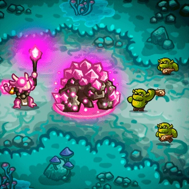 Crystal Demolishers are huge golems infused with pink magical crystals. They move slowly but hit extremely hard, even more than other giant enemies in the series and more than some minibosses. While they initially lack any armor, they will gain a stacking armor buff per nearby Anurian Channeler, making melee towers and barracks less useful against them. Upon defeat, they will crumble and damage any troops or heroes for 300 physical damage, finishing off most troops they didn't kill.
