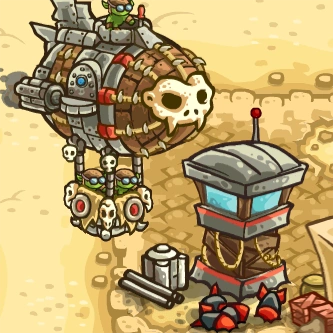 The zeppelin is functionally almost identical to Battle Mechas. Both are mobile, indestructible artillery with a significantly higher rate of fire and DPS that even rivals that of even single target towers. Both even happen to have an AOE slow effect which improves their crowd control abilities. The rally point and attack ranges give it a long effective range, making it an excellent choice for strategic points located far (but not too far) from your choke points. Goblin Scout can provide a significant boost to tower's range, but only applies to towers very close to the zeppelin, so it must be positioned carefully to maximize the impact. Sappers cannot be engaged in melee combat, so unless many ranged enemies are nearby, it's not a bad investment.