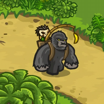 The Gorillon is a gorilla controlled by a Ma'qwa savage with a banana hung in front of it, it is encountered in the jungles of Kingdom Rush: Frontiers.