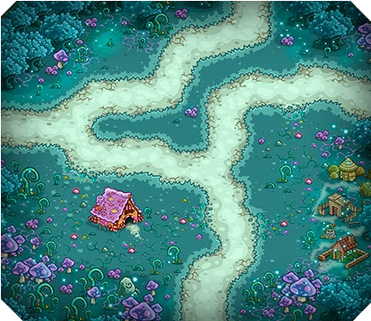 - The Gingerbread House in the middle is home to a witch, who can be lured out and tapped on to kill, freeing the two children she was holding captive, a reference to Hansel and Gretel.