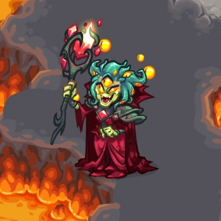 One of the Spider Queens, the sister of Sarelgaz and Mygale, she rescued Malicia after her lost battle in The Unseelie Court and forced her to help with breaking the barrier surrounding the Tear of Elynie, corrupting it in the process. | Kingdom Rush: Origins |