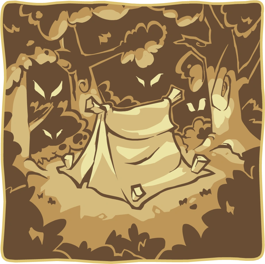 We set up camp in the middle of the night and hear rustling footsteps beyond the trees. Something is out there.
