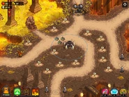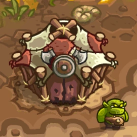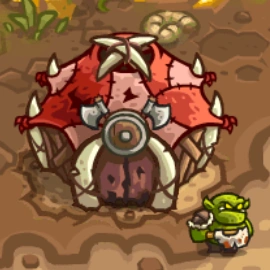 The Orc Warriors Den is a Melee Tower in Kingdom Rush: Vengeance. Introduced at the very start of the game, it trains three Orc Warriors with average stats, making it the closest equivalent to a basic barracks in the previous games.