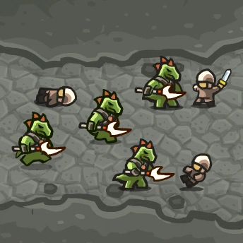Saurian Broodguards (Broodguard on the mobile version) are the basic enemies of the Underground Terrain and the most frequently encountered saurian warriors in Kingdom Rush: Frontiers.