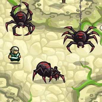 Sons of Mactans are very dangerous enemies that appear only in the last stages of Kingdom Rush: Origins. Sons of Mactans initially do not deal much damage with their regular attacks, but they run very fast and can inflict a deadly poison capable of killing soldiers in seconds. Certain Sons of Mactans can wait in ambush high over the battlefield to descend down, allowing them to bypass part of player's defenses.