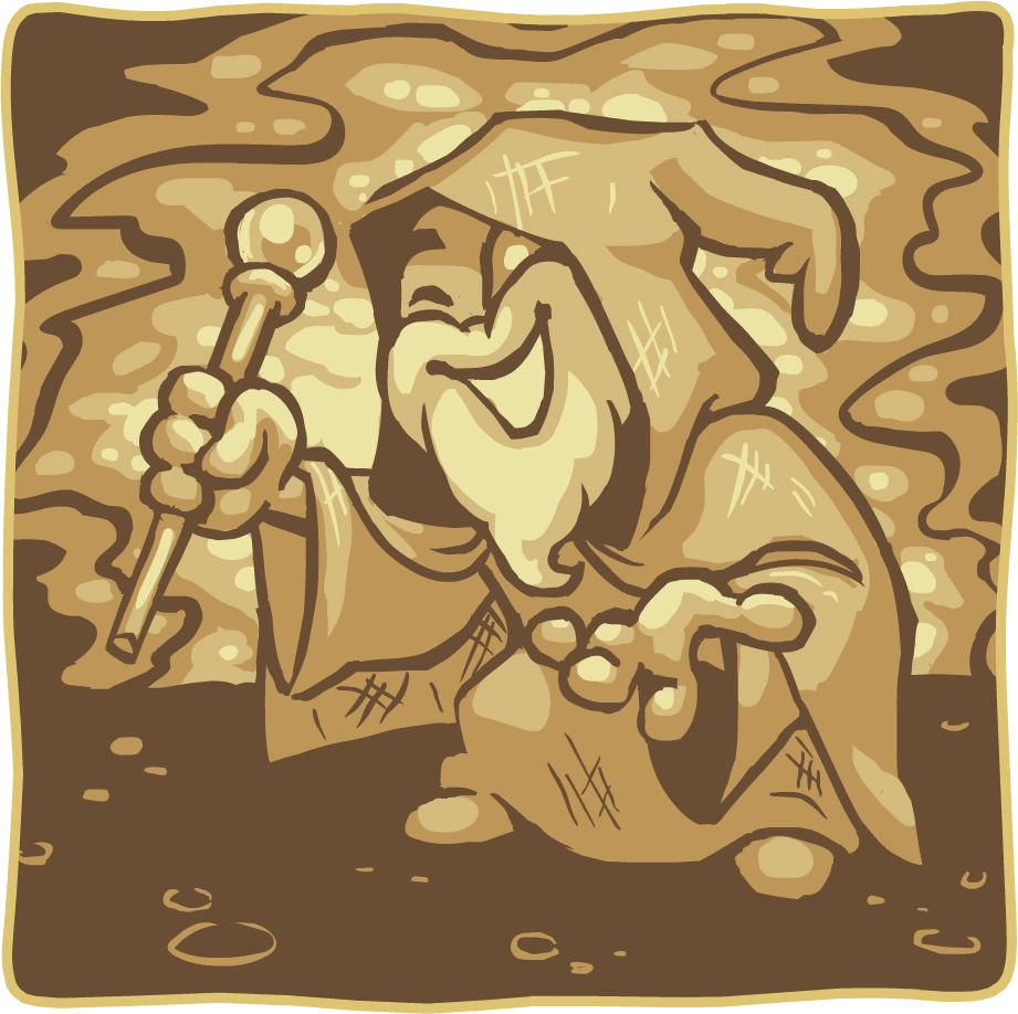 An old sorcerer approaches us with a smile on his face.