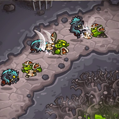 Werewolves are durable enemies first seen in Back To The Rotten Forest. They are quick and have a strong attack. Werewolves will make short work of most units and even weaker heroes such as Veruk, Asra, Oloch, Mortemis, and Tramin. Despite their fairly low magic resistance, most magic damage towers can not deal damage quick enough because of Werewolves fast movement speed.